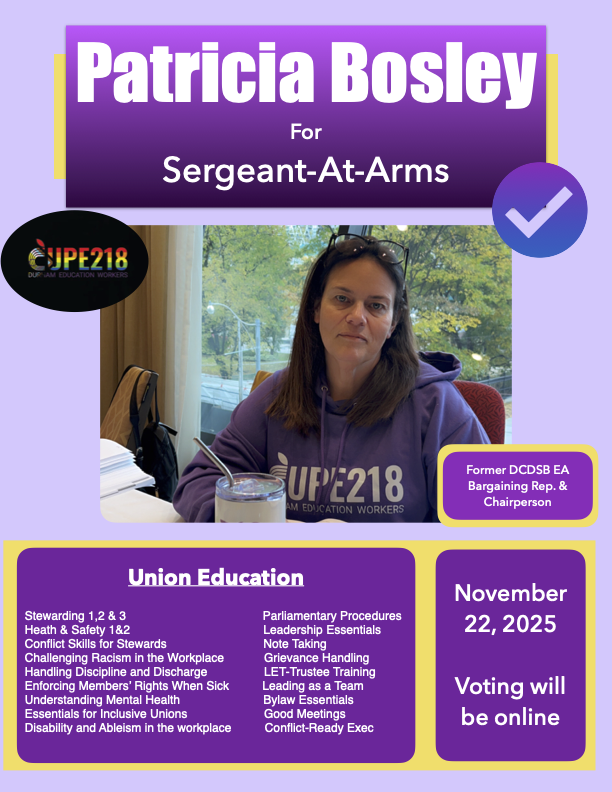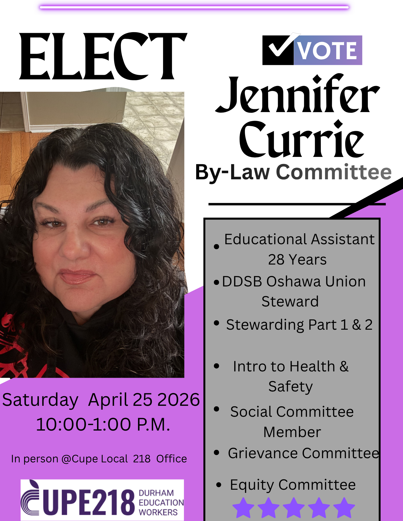 CUPE Local 218 is made up of 3,700 education workers employed by the Durham Catholic and District School Boards.